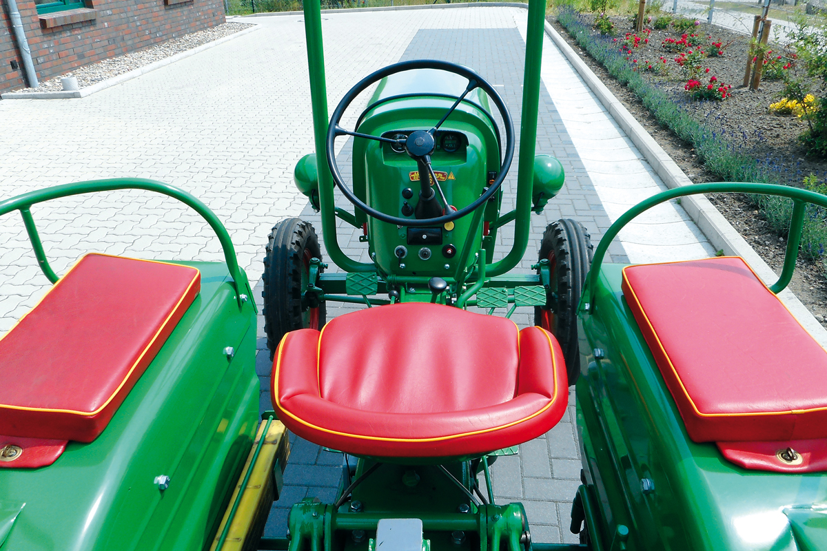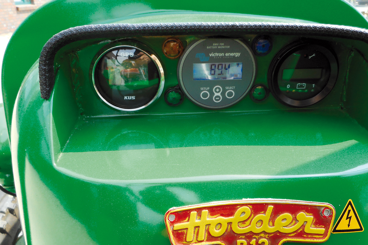 Der kleine Holder zeigt sich mit seinem 13-kW-Elektromotor sehr flott in der Beschleunigung und erreicht für einen Traktor rasante 40 km/h als Höchstgeschwindigkeit. Als offenes Fahrzeug bietet dieser Antritt und der rauschende Fahrtwind dem Piloten und allen Mitfahrern puren Spaß am elektrifiziertem Treckerfahren.